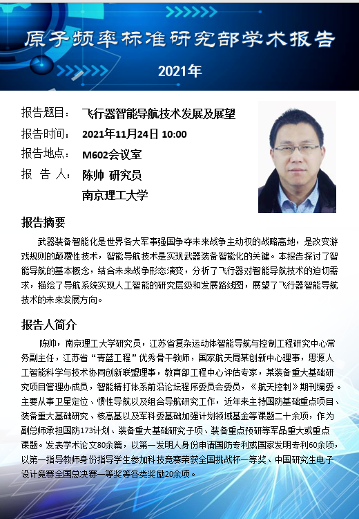 2021年11月24日evo视讯官网原子频率标准研究部学术报告