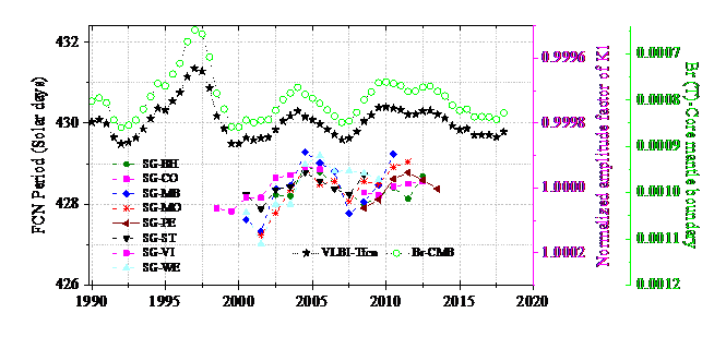重力技术和VLBI检测地球液核自由章动周期变化