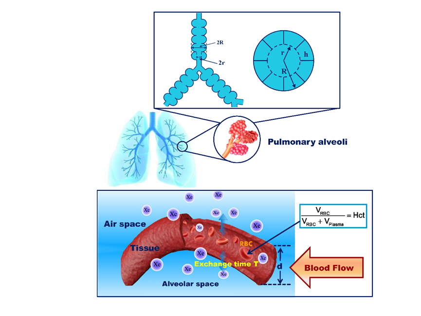 图1.基于超极化129Xe气体磁共振成像技术实现肺部微结构和气血交换功能的定量可视化检测示意图