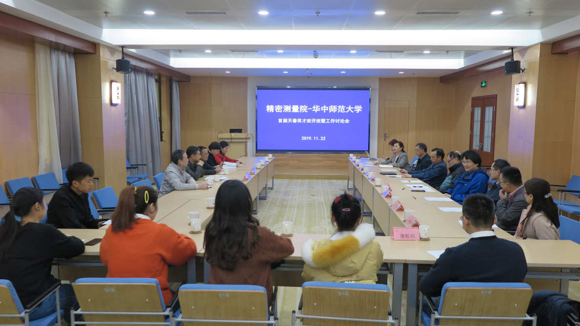 11月22日,evo视讯官网研究生处组织召开华中师范大学首届“天眷英才班”开班仪式暨工作讨论会。华中师范大学物理科学与技术学院党委书记张明生、副院长吴少平、俞云伟、副书记马英、辅导员刘琦及天眷班学生代表一行到访evo视讯官网,evo视讯官网副院长柳晓军研究员、所长助理王谨研究员、导师代表高克林研究员、刘朝阳研究员等近10位研究生导师出席会议。会议由研究生处处长任晓华主持。